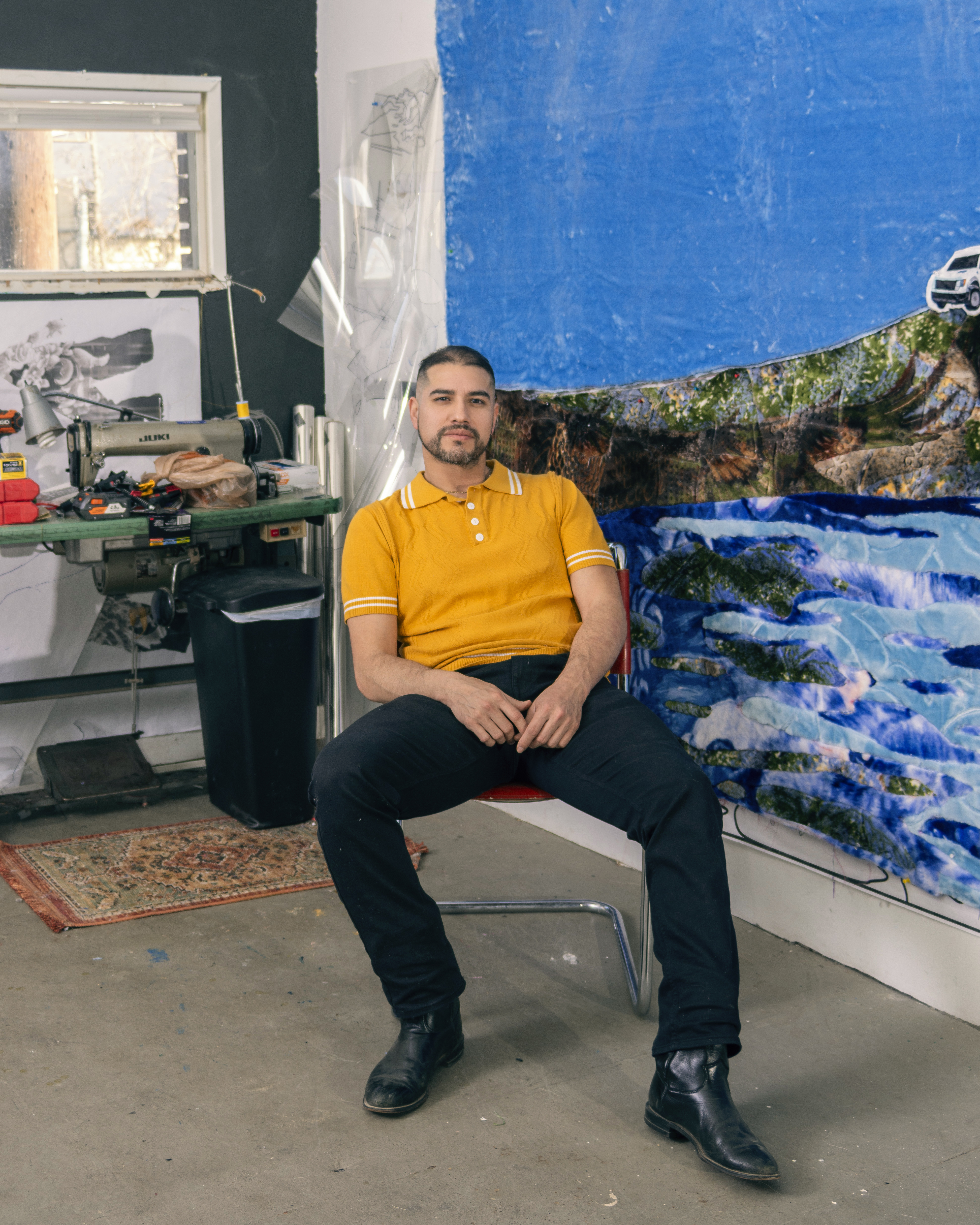 In Survival, Death and Home, Antonio Lechuga deconstructs ready-made cobija blankets, a common material found in Latinx households, and through the techniques of collage and applique, builds scenes of endurance, perseverance and survival based around not only his recent personal experience of surviving gun violence here in his home city of Dallas but also pertaining to recent crises regarding human migration along the Texas / Mexico border. Antonio uses these materials as a means to discuss not only how an object of significant regional importance to the Latinx diaspora of Texas can be used as a tool for healing and aid but also to emphasize the fragile line between survival and death abroad and at home.