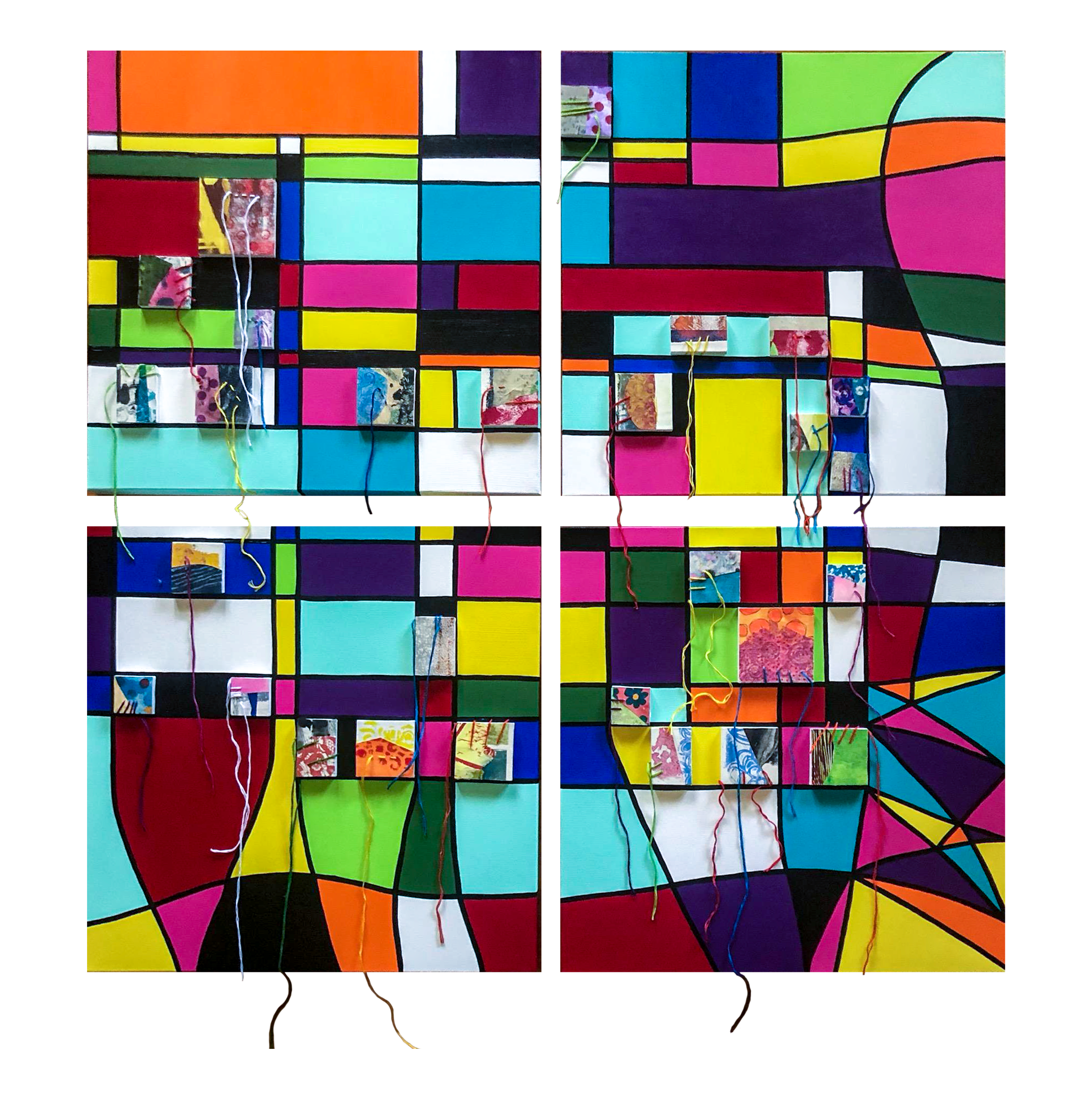 Patchwork is an abstract exploration of piecing together a body of work that merges some of my earlier works and my present-day musings and thoughts by way of modern “quilts”. Patchwork is inspired by quilts and the messages and stories that were often hidden in them based on patterns and symbols. This body of work pertains to current social issues as it relates to Black women in particular, Black joy and the randomness of my thoughts as I work my way through my creative process.