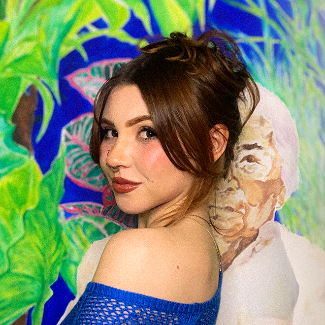 “The Garden Where I Grow”, is a retelling of a story that plays closely to Reyes and many individuals’ lives. Finding yourself, after being lost. The tale of growing from a garden that nurtures you into maturity and leading yourself on the path of rediscovering who you are by looking through your past and finding the roots that take you back to the garden that raised you.The narrative Reyes is creating expands through her visual storytelling supported by the use of her painting family pictures to convey these memories. Emphasizing core moments in time that highlight where the thriving of her family and individuality’s inner garden was rooted and nurtured. The beauty of taking root in new love, venturing through obstacles alone, and finding the promise of a beautiful place that carries hope and healing. Nurturing that love into a whole generation of women down the lineage that aspire to choose themselves in the same brave way her ancestors did before her. The healing and discovery of generational trauma inspired the generational healing of individual choices. “The garden where I grow ” is a discovery of hope for a fulfilling future by examining one’s past from the roots up. Looking through the lens of Reyes’ take on family, religion, and personal experiences that generations have shared before her in a unified aspect creates a soft visual of a safe garden where a future is possible and healing is actively occurring together.