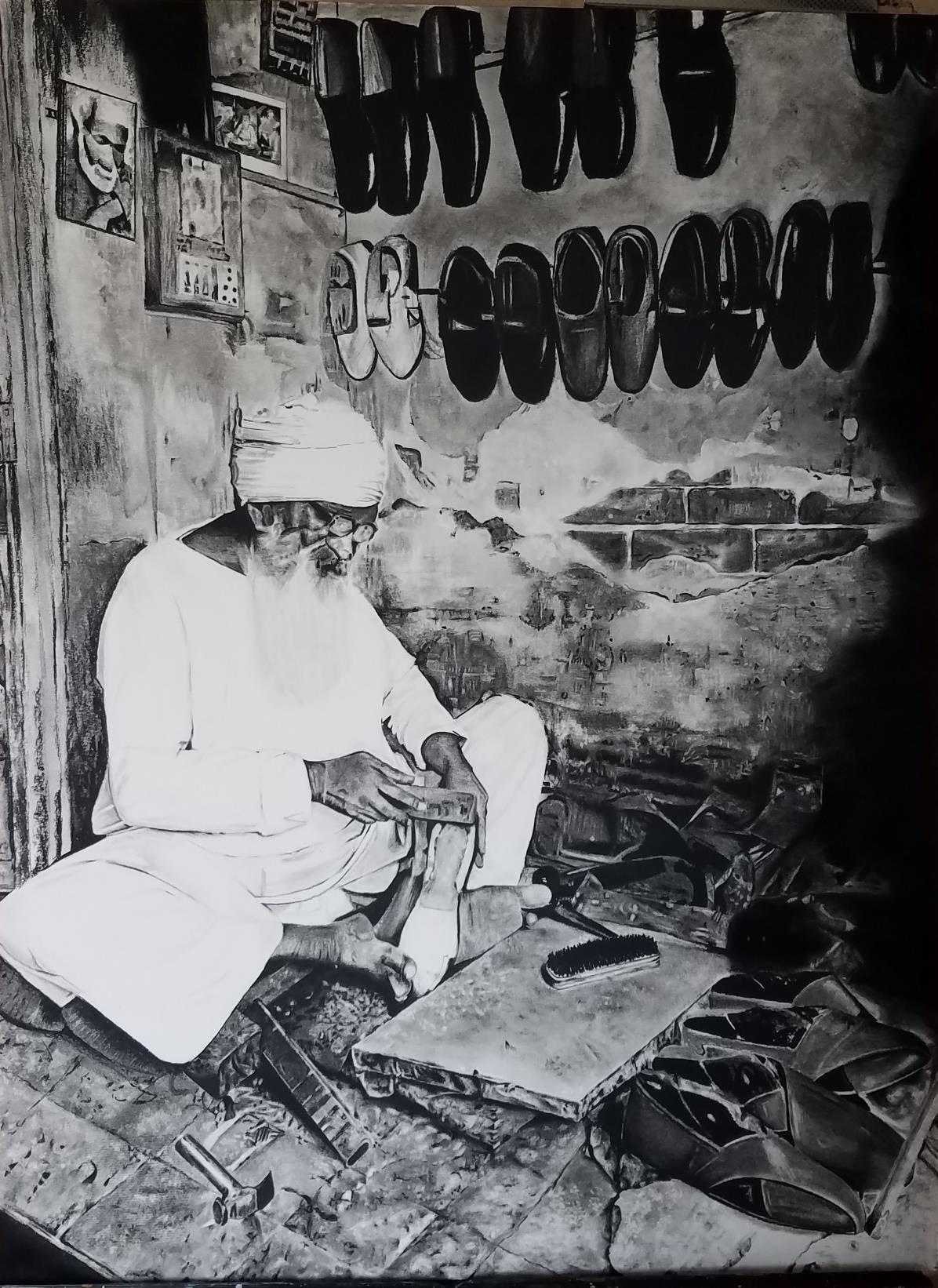 Anjali Pai THE SHOEMAKER Charcoal pencil 25 inch x 32 inch 2020