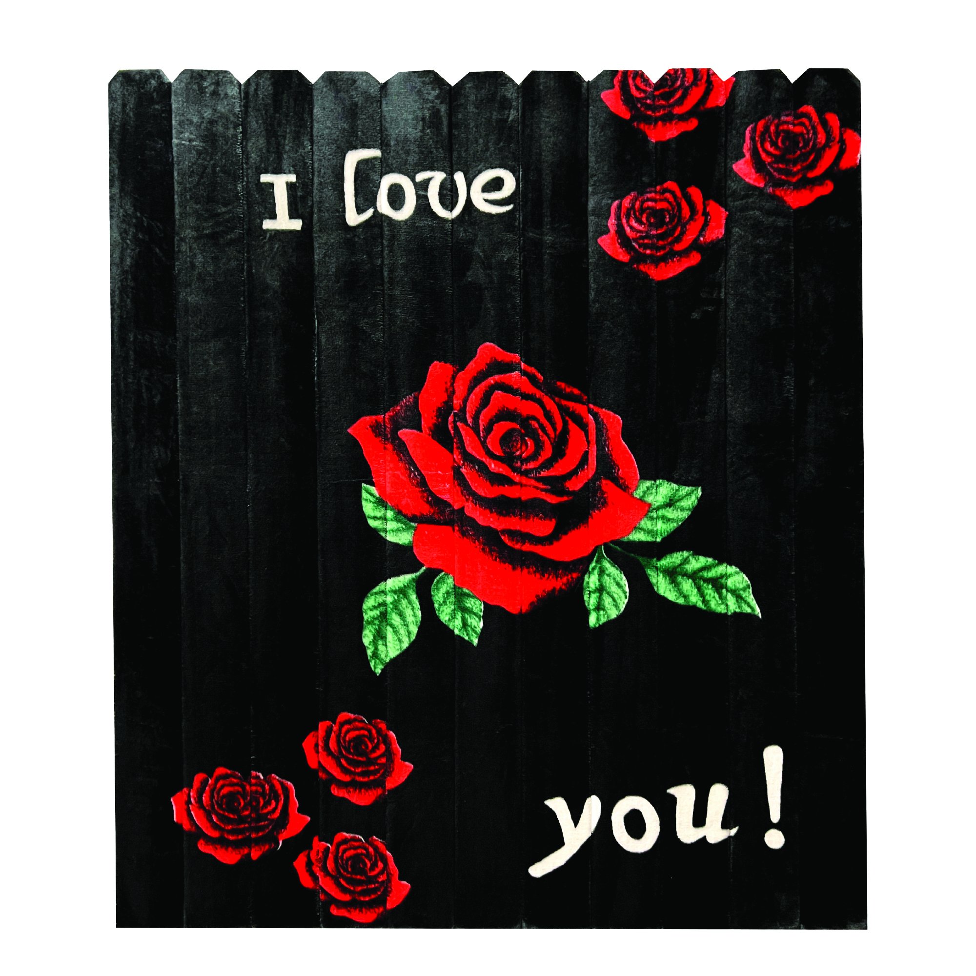 Antonio Lechuga I Love You Fence, 2021 Cobija (fleece blanket), wood, metal 65 inch x 75 inch x 5 inch