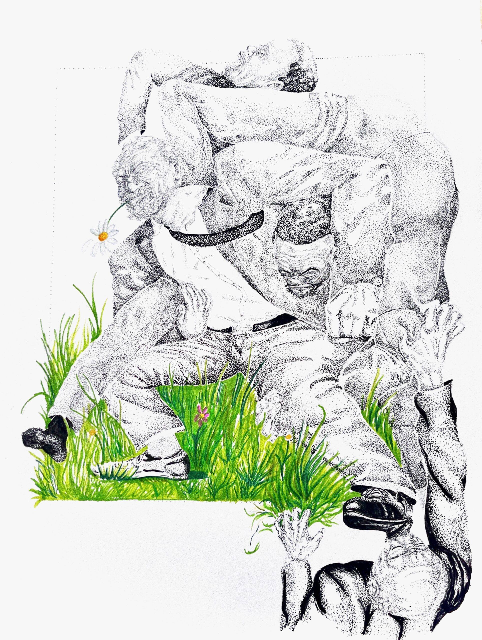A work representing the interior and exterior struggles of growth and the societal search for validation or “flowers” that can’t necessarily feed you or fulfill you in life or posthumously.