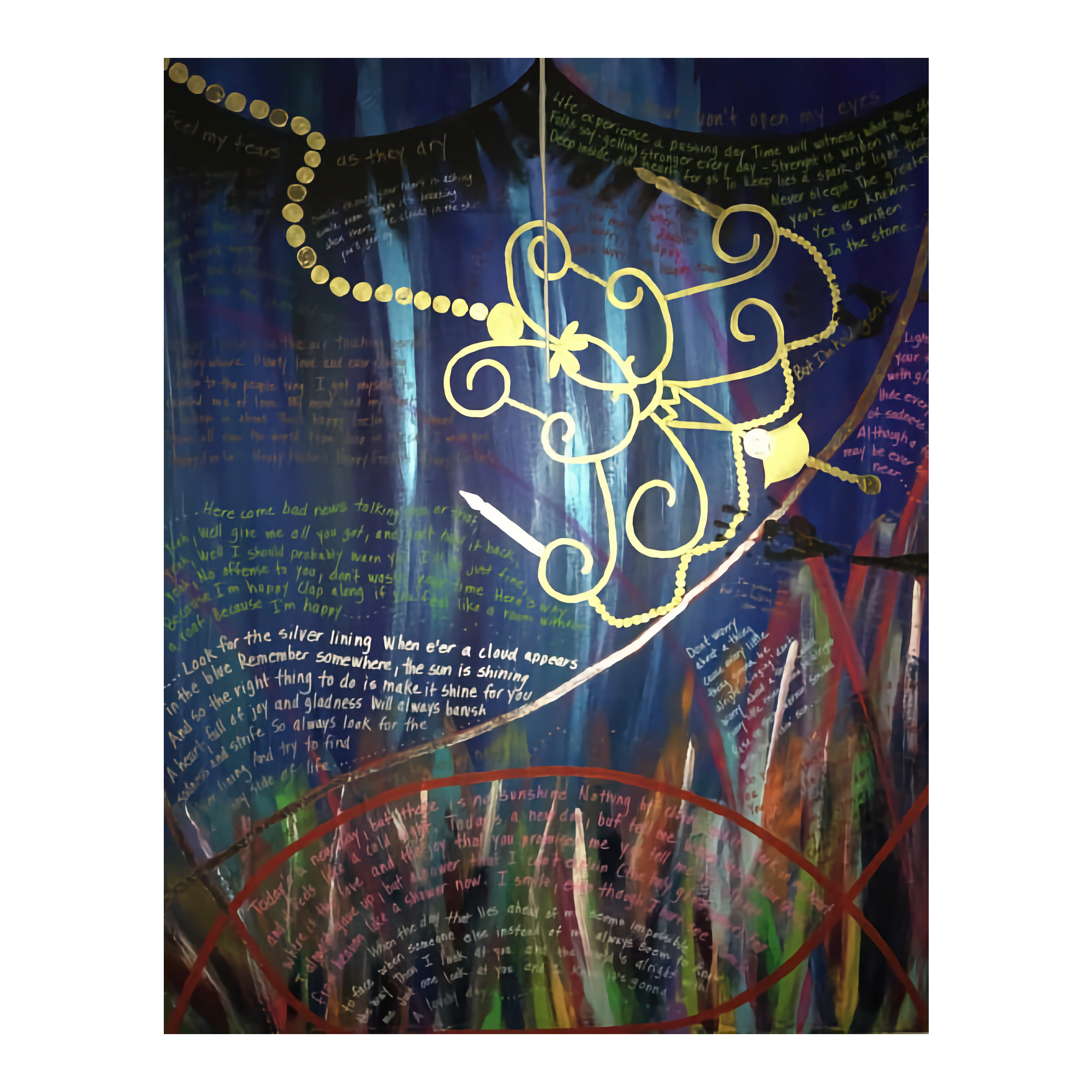 Chandelier Jennifer Monet Cowley Acrylic, gold leaf and silver leaf on canvas 60 x 48 in Price: $14,500 Location: Daisha Board Gallery