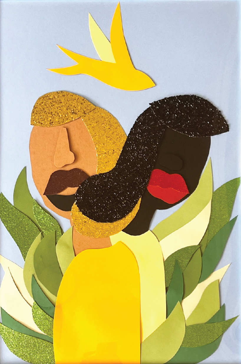 Kelsha Reese CIPHER (2024) paper collage on matboard and wood 24 inch x 36 inch