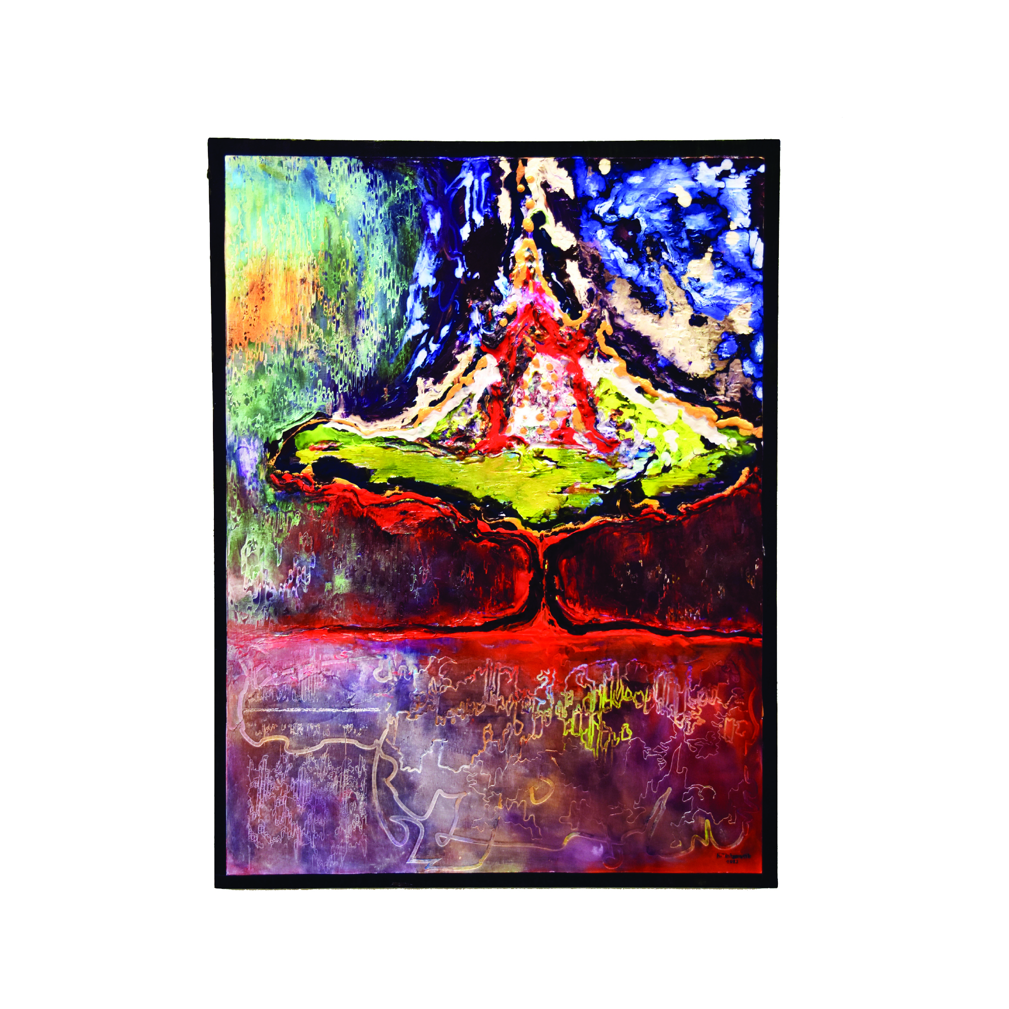 Narong Tintamusik Underneath the Skin of My Mother’s Clothing 1, 2023 Acrylic, collage, laser etching on 300 gsm Strathmore paper mounted on wood-dyed panel 19 inch x 25 inch