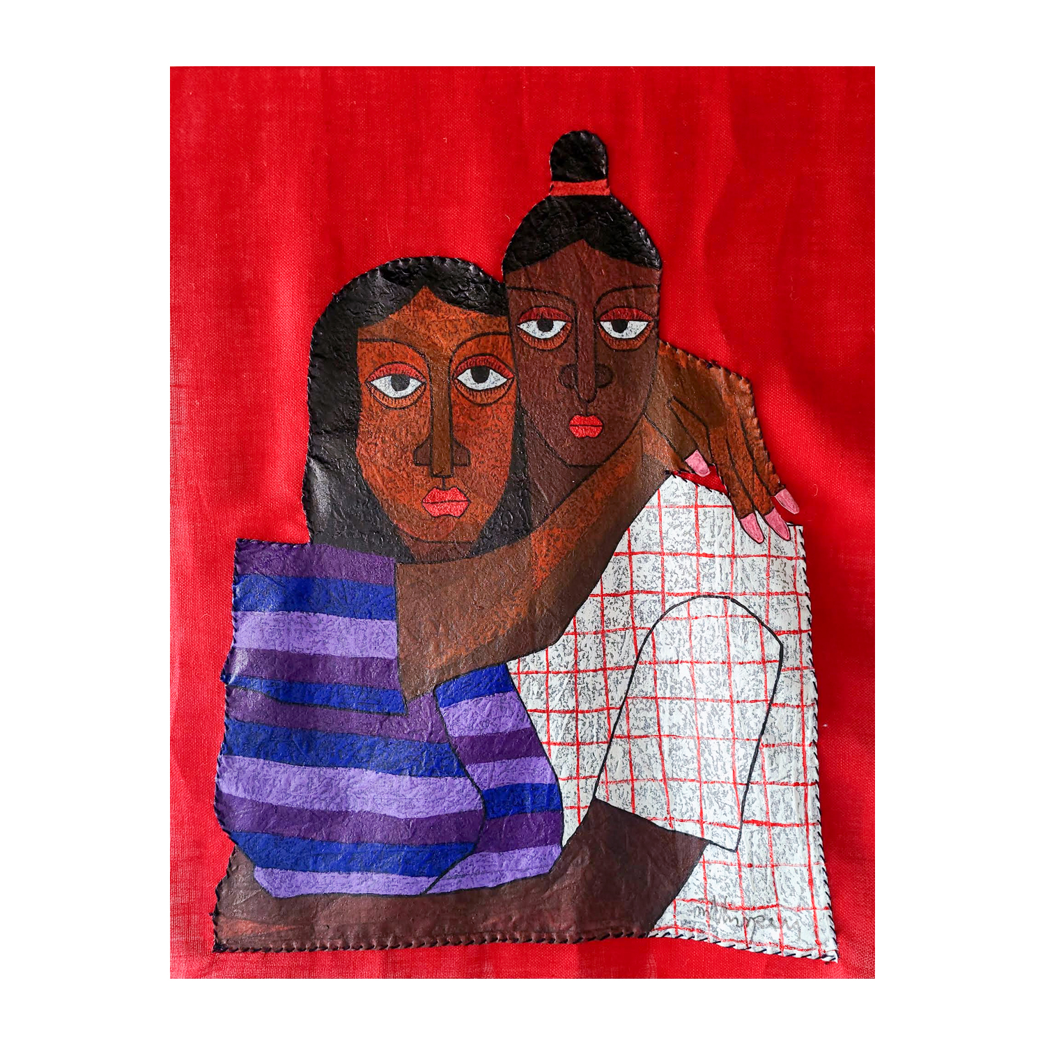 Nii Narku Thompson When lovers loved (2022) 47 inch x 37 inch Acrylic, thread, canvas on burlap