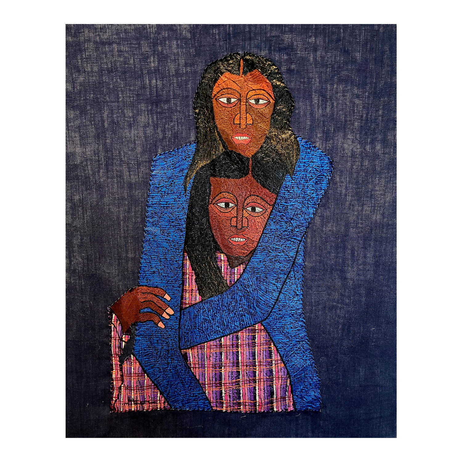 Nii Narku Thompson When you fall for love (2022) 48 inch x 54 inch Acrylic, thread, canvas on burlap