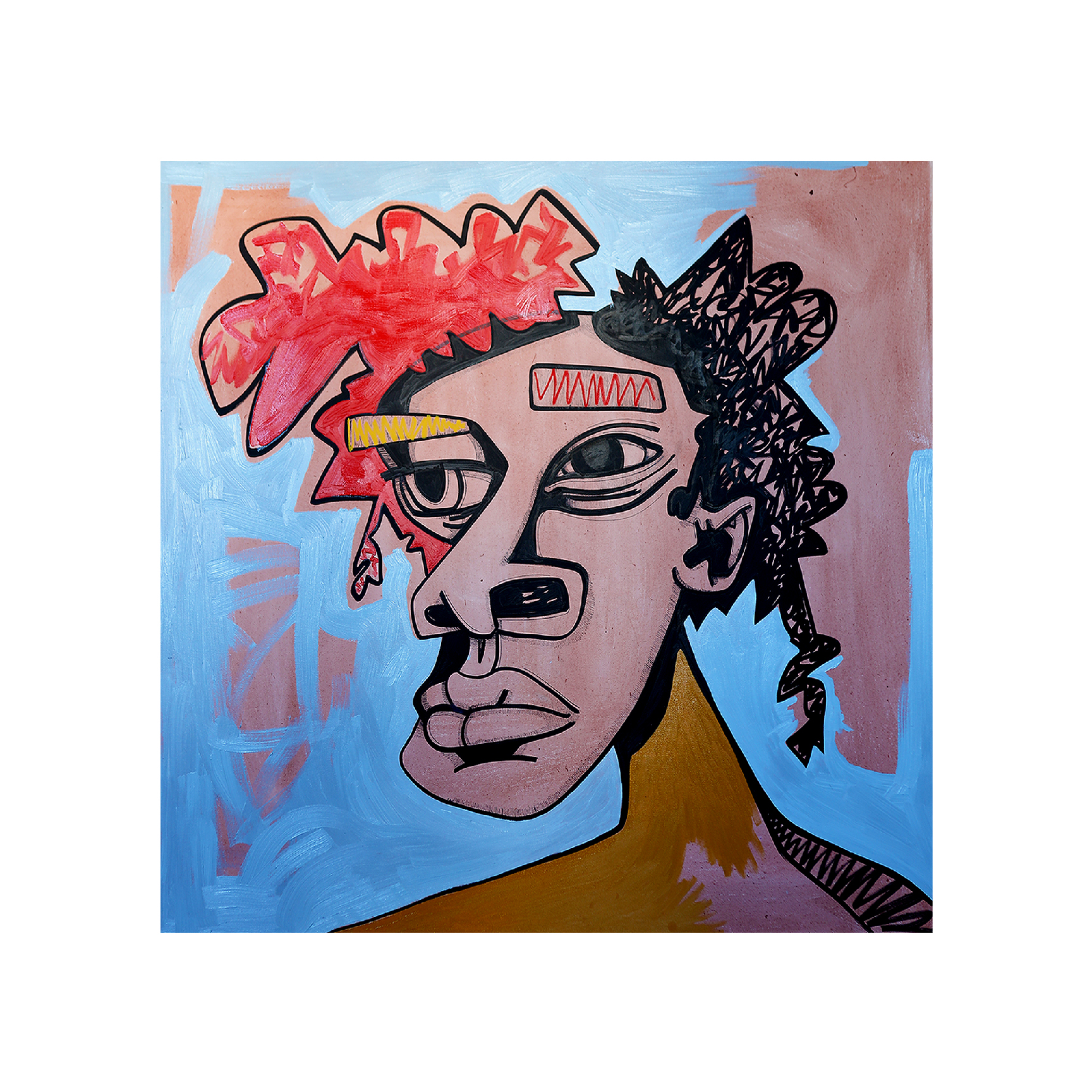 YNG Searching (2023) 48 inch x 48 inch oil paint, oil pastel and pen on canvas